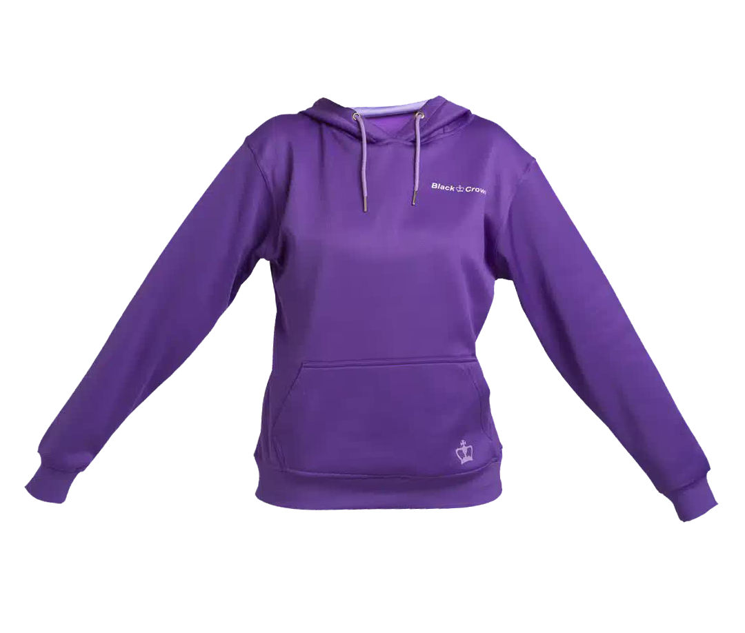 Φούτερ που συνδυάζει μωβ χρώματα με κεντρική τσέπη.