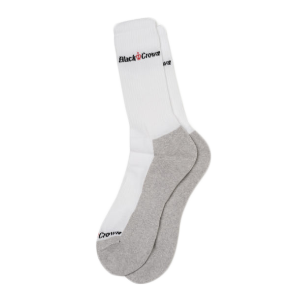 Ειδικές μακριές κάλτσες για αθλήματα, κατασκευασμένες για να εγγυώνται μέγιστη άνεση στον παίκτη στις κινήσεις του. Συνδυασμός λευκών και γκρι χρωμάτων.