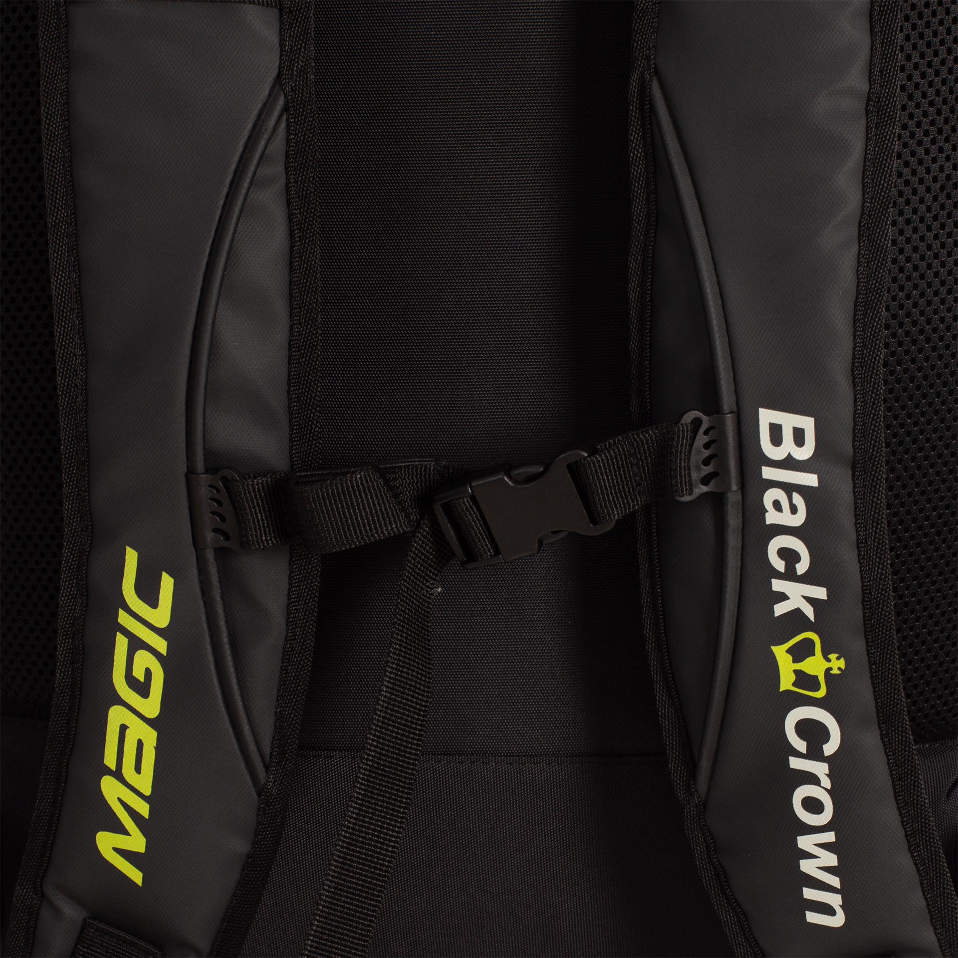 Το σακίδιο πλάτης Black Crown Magic είναι κατασκευασμένο από 30% υλικά Eva και 70% PVC εξωτερικά και 100% πολυεστέρα εσωτερικά Συνδυάζει χρώματα μπορντώ και μαύρο και μαύρο και κίτρινο. Πάντα ψάχνετε για το καλύτερο σχέδιο για τον παίκτη.
