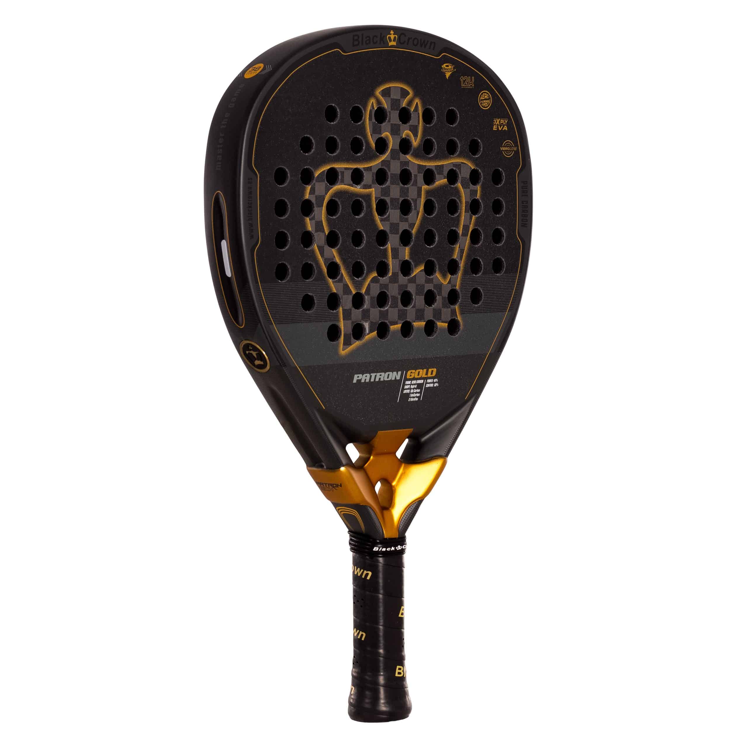 Η Black Crown Patron Gold τοποθετείται ως μία από τις πιο προηγμένες ρακέτες της συλλογής μας για το 2025, σχεδιασμένο για παίκτες που απαιτούν το καλύτερο σε κάθε πτυχή του παιχνιδιού τους. Κατασκευασμένη με πλαίσιο Aero Carbon 100% άνθρακα και τελική επίστρωση 12Κ άνθρακα, αυτή η ρακέτα προσφέρει εξαιρετική αντοχή και ελεγχόμενη ισχύ, ιδανική για παίκτες που αναζητούν ακρίβεια χωρίς να θυσιάζει τη δύναμη. Η προσθήκη άνθρακα μονής κατεύθυνσης ενισχύει τη δομή, εξασφαλίζοντας σταθερή απόδοση σε κάθε λήψη.