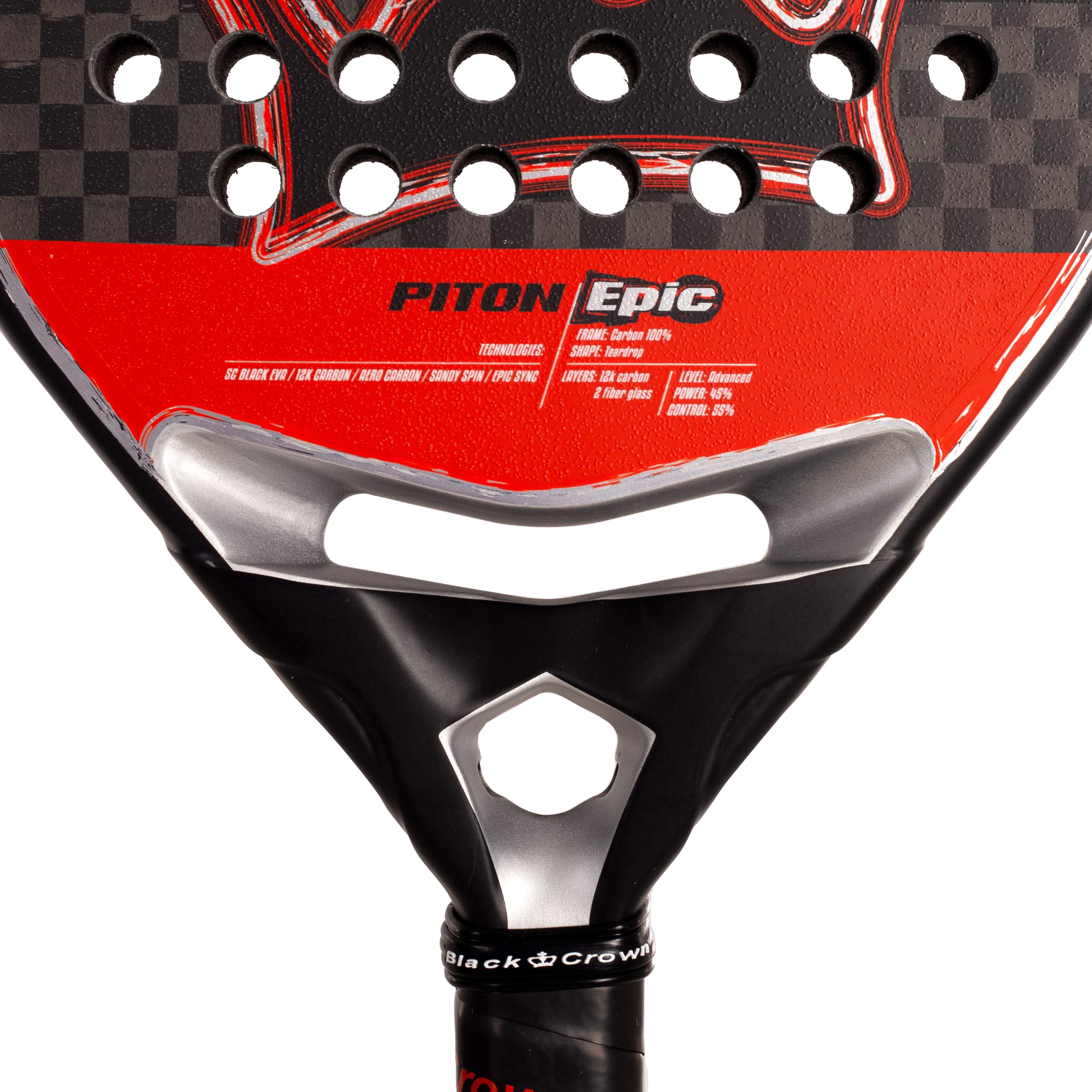 Εξοπλισμένη με πυρήνα Super Control Black EVA, το Piton Epic εγγυάται ακριβή απόκριση και ασύγκριτη αίσθηση όταν έρχεται σε επαφή με την μπάλα. Το πλαίσιο του, κατασκευασμένο από 100% ανθρακονήματα και ενισχυμένο με τεχνολογία Aero Carbon, προσθέτει εξαιρετική ανθεκτικότητα, αντιστέκεται στις πιο απαιτητικές κρούσεις. Επιπλέον, το φινίρισμα Sandy Spin με μια τραχιά υφή σαν άμμο θα σας επιτρέψει να κυριαρχήσετε στο παιχνίδι με ακριβή εφέ και απίστευτο έλεγχο.