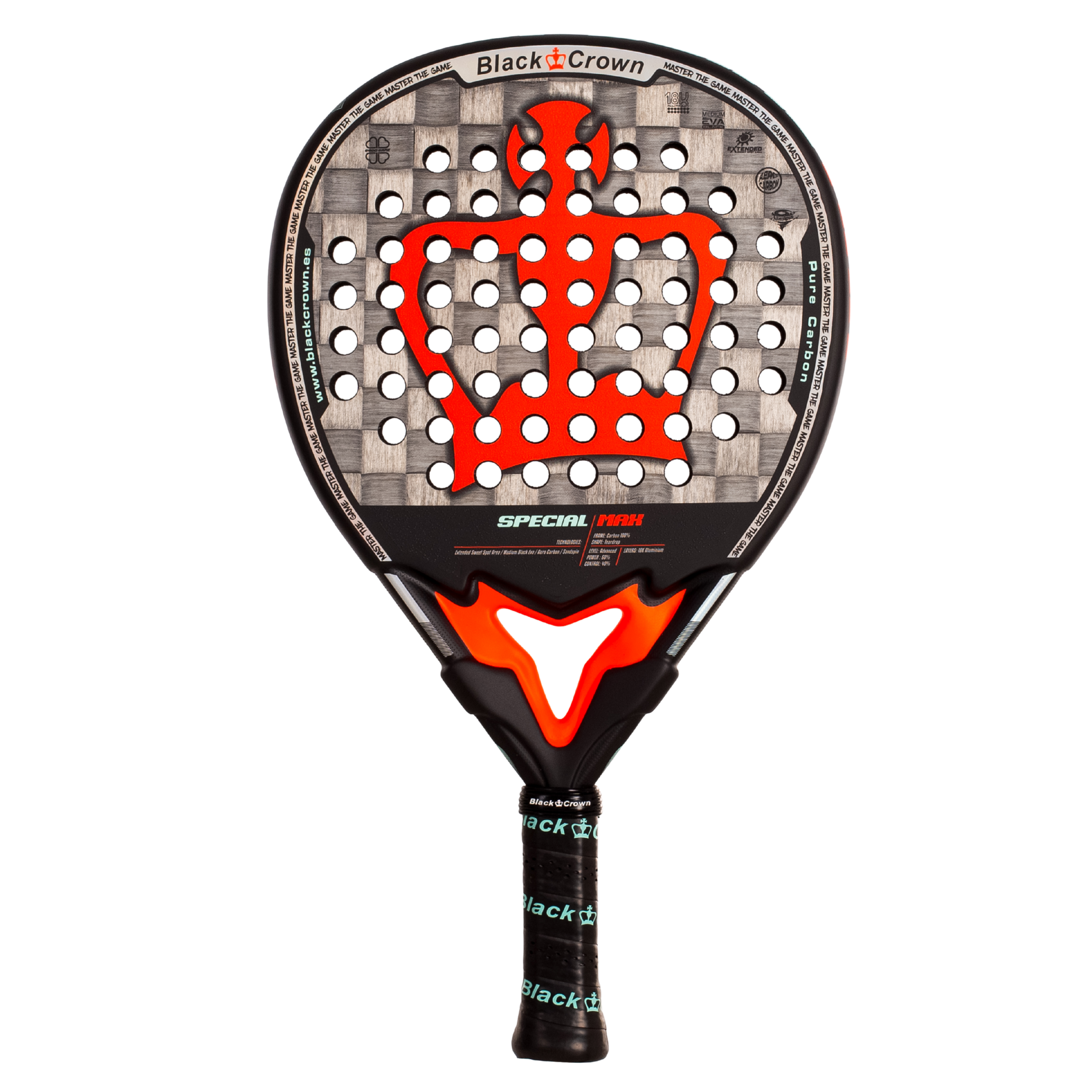Η Black Crown Special Max είναι μια premium ρακέτα padel, σχεδιασμένη για προχωρημένους και επαγγελματίες παίκτες που αναζητούν μέγιστη δύναμη σε κάθε χτύπημα. Το σχήμα δάκρυ, σε συνδυασμό με την επιφάνεια από 18K aluminized carbon και την επιπλέον στρώση unidirectional carbon, προσφέρει εκρηκτική απόδοση στα δυνατά και επιθετικά χτυπήματα.