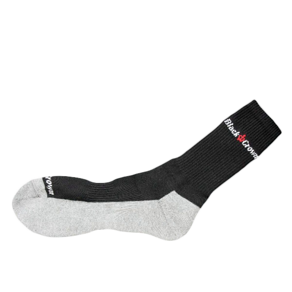 Ειδικές μακριές κάλτσες Black crown για αθλήματα, κατασκευασμένες για να εγγυώνται μέγιστη άνεση στον παίκτη στις κινήσεις του. Συνδυασμός μαύρου και γκρι χρωμάτων.